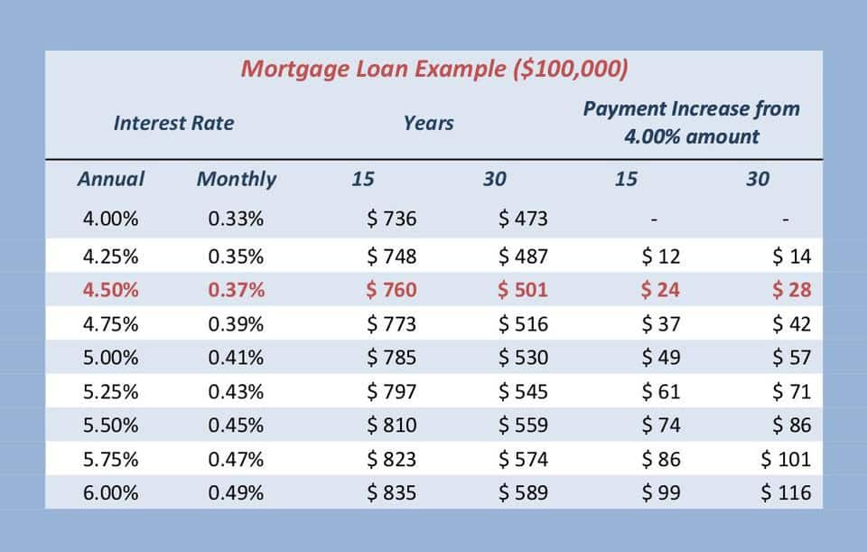 Because mortgage interest rates are up this year to 4.50% from 4.00%, some reports have expressed a negative housing outlook. The graph below shows what history has taught – homebuyers will find a way to buy when conditions are favorable, like now. In addition, because mortgages are long-term, the change in payment amounts for a change in interest rates is relatively small (for example, in the table below, the $28 per month increase on a $100,000, 30-year mortgage at 4.50% compared to one at 4.00%). Also, mortgage interest remains deductible, so the after-tax payment amounts are less than shown. (The new limitation on the mortgage interest deduction is based on a maximum mortgage loan of $750,000, not on the amount of interest paid.)